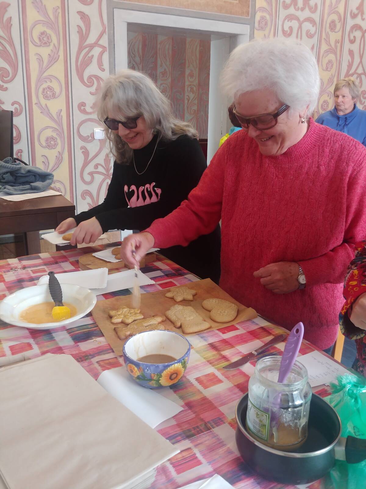 Na začátku programu jsme se věnovali historii perníkářů a používaným přísadám, potom jsme přešli na praktické zkoušení - pečení perníku z kadlubových forem. Zkoušeli jsme různá těsta i potírání. Všechny perníky se našim účastnicím povedly.