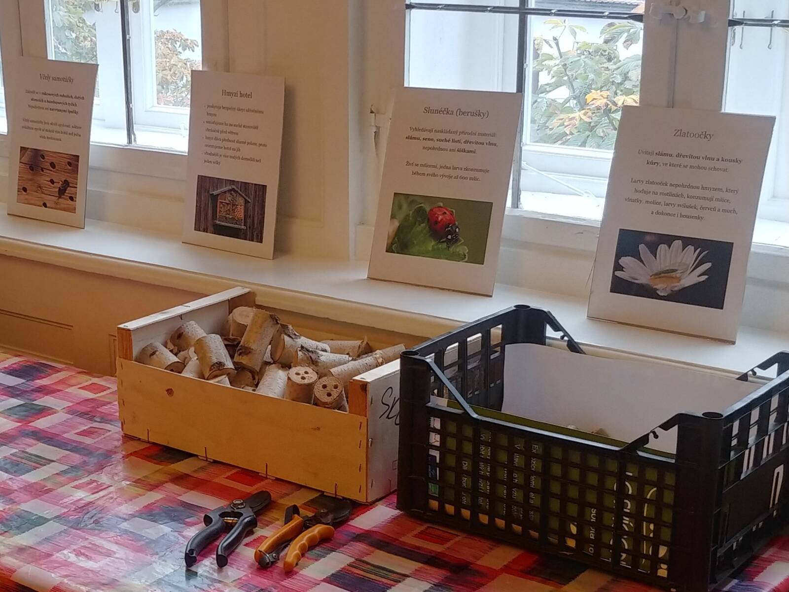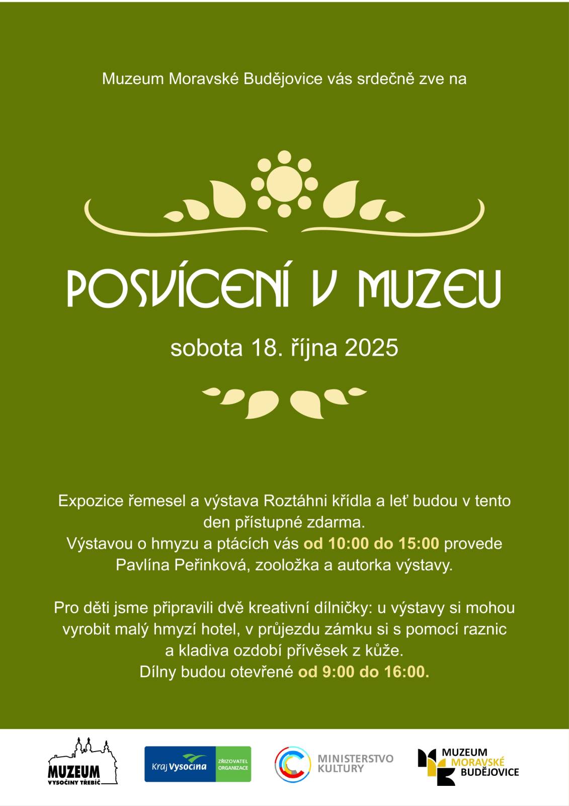 V sobotu 18. října nabídlo muzeum program k císařskému posvícení. Expozice řemesel a výstava Roztáhni křídla a byly otevřeny zdarma. Výstavou o hmyzu a ptácích návštěvníky provedla Pavlína Peřinková, zooložka a autorka výstavy. Pro děti jsme připravili dvě kreativní dílničky: u výstavy si vyráběly malý hmyzí hotel, v průjezdu zámku s pomocí raznic a kladiva zdobily přívěsek z kůže.